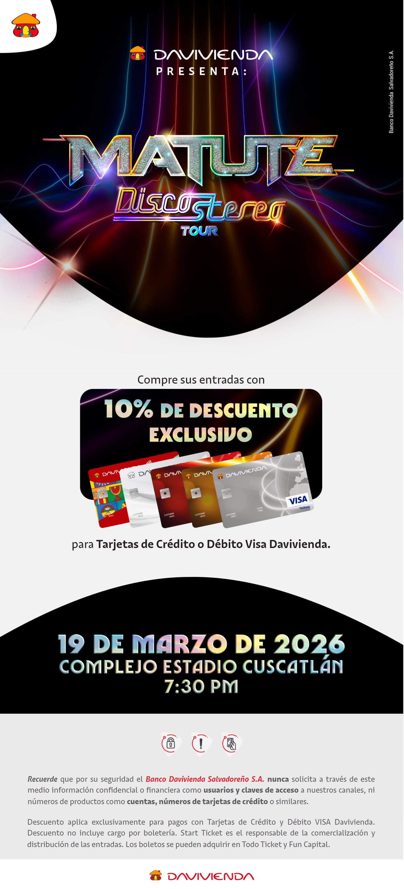 10% de descuento al comprar sus entradas para CONCIERTO DE MATUTE Editor Davivienda2026-02-23T09:40:44-06:00 Comparta esta promoción FacebookXWhatsAppCorreo electrónico